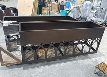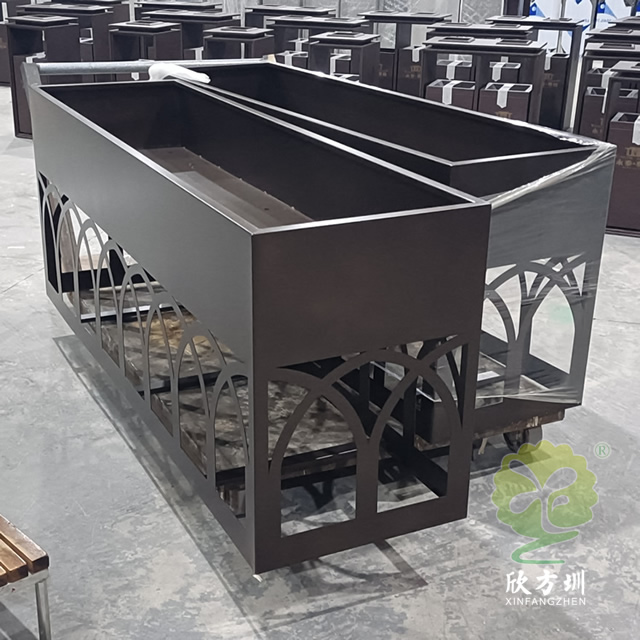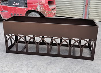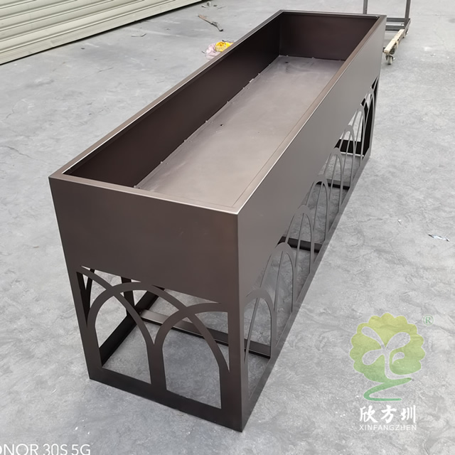 户外喷塑长方形镀锌板花箱表面工艺可以进行各种圆形、方形、异型定做加工服务。镀锌板花盆主要用于小区、酒店、汽车4s店、家庭、政府机关等存放鲜花。镀锌板花盆作为如今非常流行的一种产品,相对于木质、塑料、陶土花盆来说更适合用于室内外的工程使用,因为其独特的镀锌板特性,让其拥有更好的抗冲击力,不会轻易损坏。而且好的材料,可以让其无惧风雨的侵蚀,拥有更长的使用寿命。