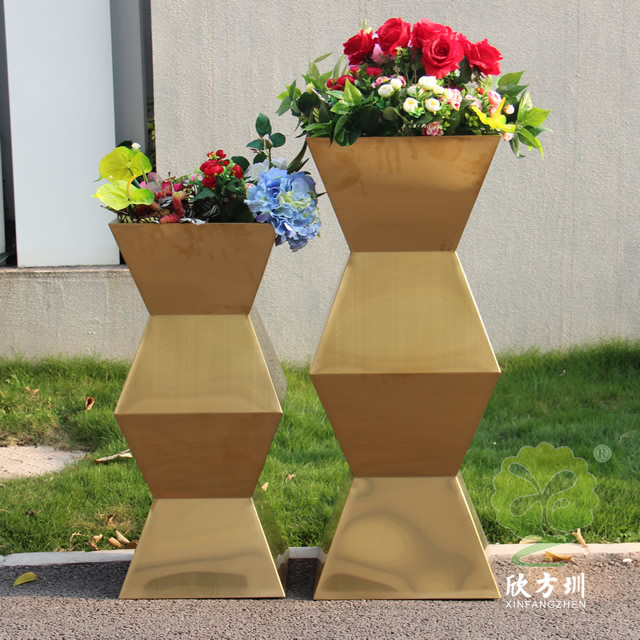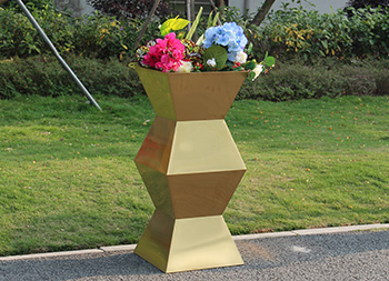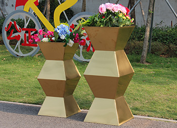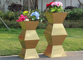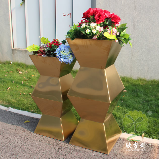 室内方形镜面钛金不锈钢花盆表面工艺可以进行各种圆形、方形、异型定做加工服务。不锈钢花盆主要用于小区、酒店、汽车4s店、家庭、政府机关等存放鲜花。不锈钢花盆作为如今非常流行的一种产品,相对于木质、塑料、陶土花盆来说更适合用于室内外的工程使用,因为其独特的不锈钢特性,让其拥有更好的抗冲击力,不会轻易损坏。而且好的材料,可以让其无惧风雨的侵蚀,拥有更长的使用寿命。