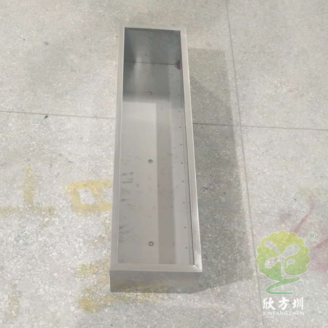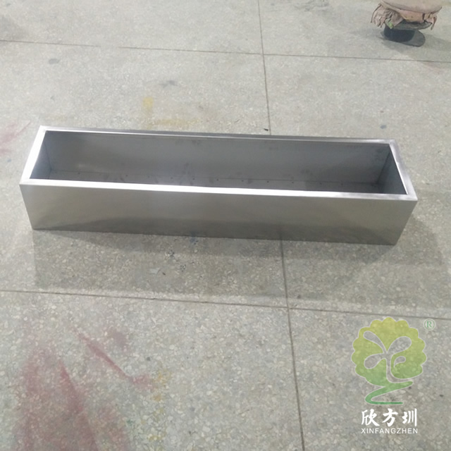 室外长方形不锈钢本色花箱通过表面电镀压纹、水镀、蚀刻、电镀、无氰碱性亮铜、纳米镍、等技术的工艺处理,具有坚固耐用,抗老化,强度高,耐腐蚀,耐酸碱,等不易褐色使用寿命长的功效。不锈钢表面处理(镀钛、镜面、拉丝、蚀刻)加工工艺的提高,外观美观度实用等一系列产品特质更适用于室内外的工程使用。