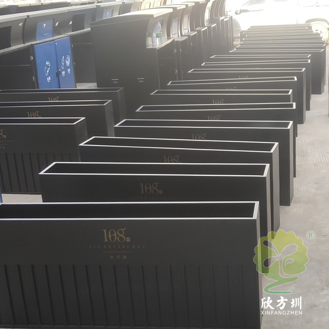 户外物业长方形喷塑冷轧钢板花箱通过表面电镀压纹、水镀、蚀刻、电镀、无氰碱性亮铜、纳米镍、等技术的工艺处理,具有坚固耐用,抗老化,强度高,耐腐蚀,耐酸碱,等不易褐色使用寿命长的功效。冷轧钢板表面处理(镀钛、镜面、拉丝、蚀刻)加工工艺的提高,外观美观度实用等一系列产品特质更适用于室内外的工程使用。
