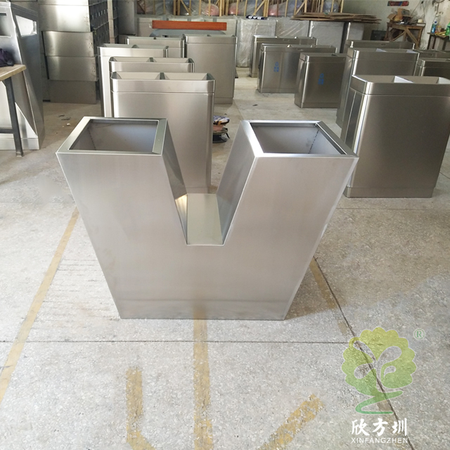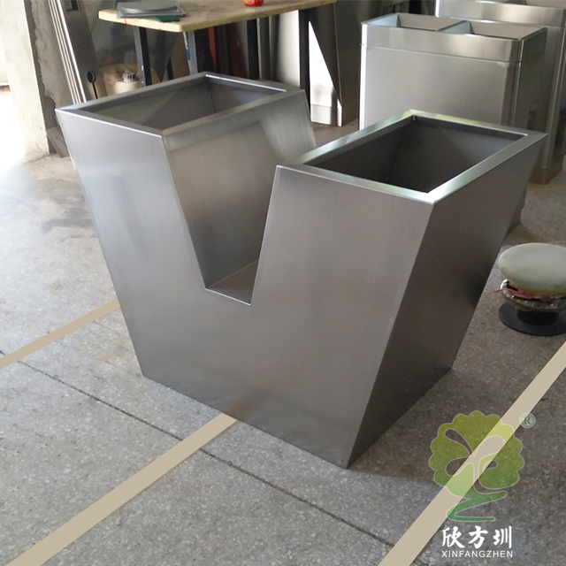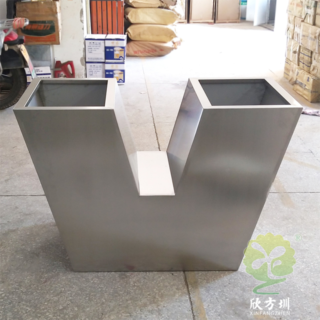 室外V形组合式不锈钢花盆通过表面电镀压纹、水镀、蚀刻、电镀、无氰碱性亮铜、纳米镍、等技术的工艺处理,具有坚固耐用,抗老化,强度高,耐腐蚀,耐酸碱,等不易褐色使用寿命长的功效。不锈钢表面处理(镀钛、镜面、拉丝、蚀刻)加工工艺的提高,外观美观度实用等一系列产品特质更适用于室内外的工程使用。