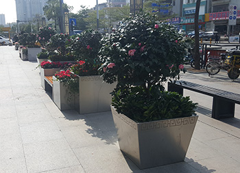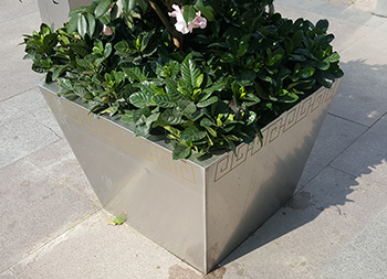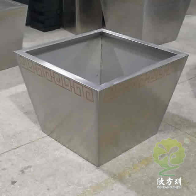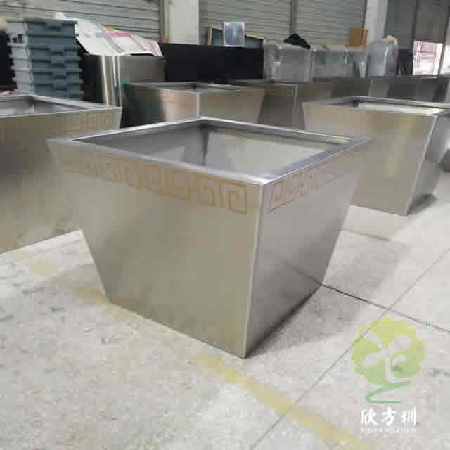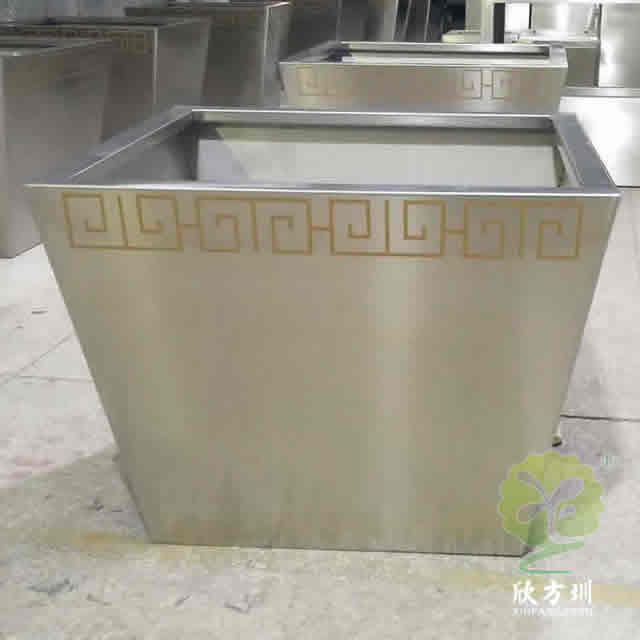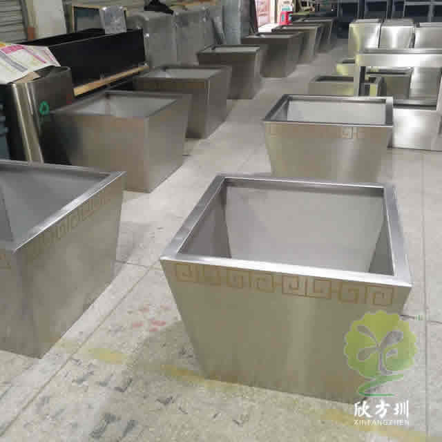 户外方形组合式不锈钢花箱通过表面电镀压纹、水镀、蚀刻、电镀、无氰碱性亮铜、纳米镍、等技术的工艺处理,具有坚固耐用,抗老化,强度高,耐腐蚀,耐酸碱,等不易褐色使用寿命长的功效。不锈钢表面处理(镀钛、镜面、拉丝、蚀刻)加工工艺的提高,外观美观度实用等一系列产品特质更适用于室内外的工程使用。