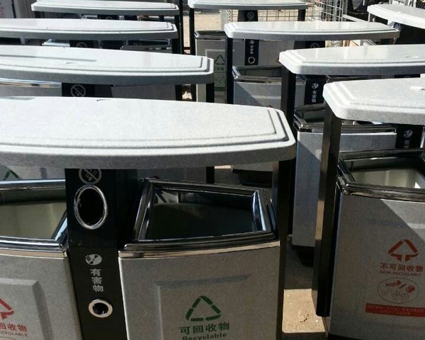 龙华街道办公大楼选用方圳不锈钢垃圾桶