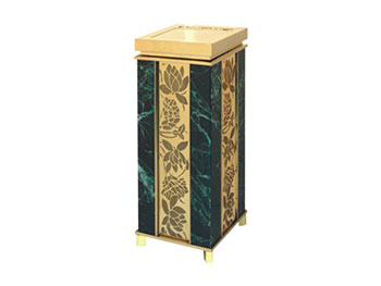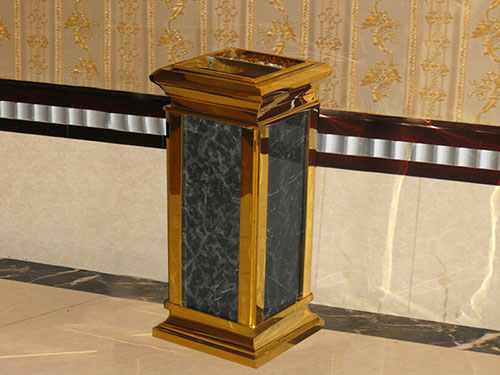 欣方圳钛金垃圾桶由镀金钢板或不锈钢和大理石制作而成,表面经除油、清洗、酸洗、清洗、表调、磷化、清洗、烘干、静电粉末喷涂、高温塑化、冷却等工艺处理。极耐磨损、耐酸、耐碱,耐腐蚀性,永远不会生锈。产品表面呈金黄色,光滑亮丽,彰显高贵本色,适用于各种高档室内场合。