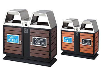 环保塑木分类垃圾箱                              钢木分类果皮箱