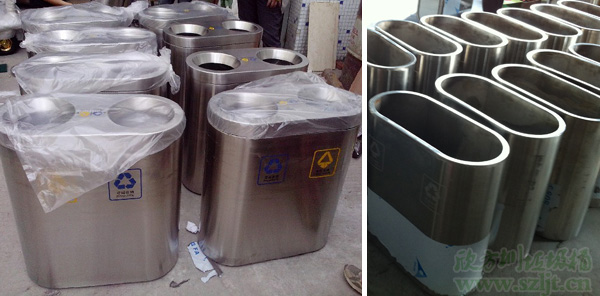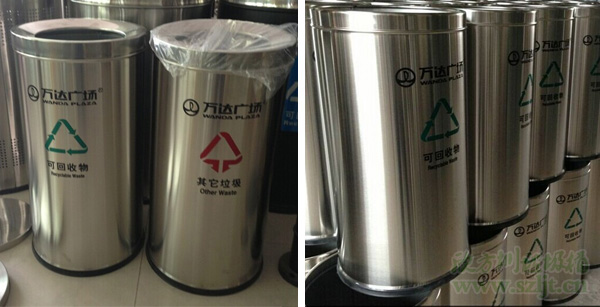 生产工艺:欣方圳为万达广场定制生产多款不锈钢垃圾桶,采用#304不锈钢材质,批量订购C18不锈钢单桶垃圾桶、C60不锈钢单桶垃圾桶、JP07万达商场不锈钢双桶等多款万达广场垃圾桶。表面光洁透亮,坚固耐用,不易破损;采用砂光处理效果,呈现出极强的金属质感;内部配置厚度为1.0mm的镀锌板内胆。