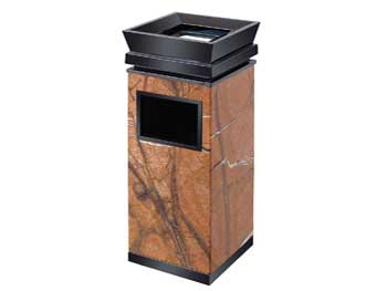 生产工艺:采用天然的大理石与优质冷轧钢板或不锈钢钢板制作而成,四面大理石用钢板螺丝固定于桶体,有内桶,方便提倒垃圾,桶头烟灰盅可放白石子可清洗,钢板经折弯冲压一次性成型。产品一律用室外粉静电喷塑,经过180°的高温,延长垃圾桶使用寿命,颜色持久不变亮丽如新。