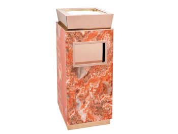 生产工艺:采用天然的大理石与优质冷轧钢板或不锈钢钢板制作而成,四面大理石用钢板螺丝固定于桶体,有内桶,方便提倒垃圾,桶头烟灰盅可放白石子可清洗,钢板经折弯冲压一次性成型。产品一律用室外粉静电喷塑,经过180°的高温,延长垃圾桶使用寿命,颜色持久不变亮丽如新。