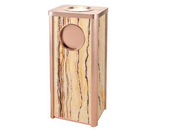 欣方圳钛金垃圾桶由镀金钢板或不锈钢和大理石制作而成,表面经除油、清洗、酸洗、清洗、表调、磷化、清洗、烘干、静电粉末喷涂、高温塑化、冷却等工艺处理。极耐磨损、耐酸、耐碱,耐腐蚀性,永远不会生锈。产品表面呈金黄色,光滑亮丽,彰显高贵本色,适用于各种高档室内场合。