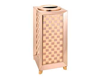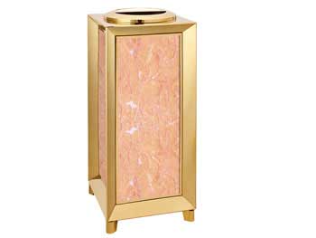 欣方圳钛金垃圾桶由镀金钢板或不锈钢和大理石制作而成,表面经除油、清洗、酸洗、清洗、表调、磷化、清洗、烘干、静电粉末喷涂、高温塑化、冷却等工艺处理。极耐磨损、耐酸、耐碱,耐腐蚀性,永远不会生锈。产品表面呈金黄色,光滑亮丽,彰显高贵本色,适用于各种高档室内场合。