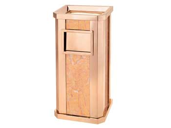 欣方圳钛金垃圾桶由镀金钢板或不锈钢和大理石制作而成,表面经除油、清洗、酸洗、清洗、表调、磷化、清洗、烘干、静电粉末喷涂、高温塑化、冷却等工艺处理。极耐磨损、耐酸、耐碱,耐腐蚀性,永远不会生锈。产品表面呈金黄色,光滑亮丽,彰显高贵本色,适用于各种高档室内场合。