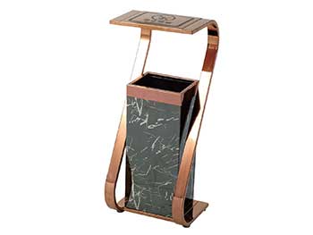 欣方圳钛金垃圾桶由镀金钢板或不锈钢和大理石制作而成,表面经除油、清洗、酸洗、清洗、表调、磷化、清洗、烘干、静电粉末喷涂、高温塑化、冷却等工艺处理。极耐磨损、耐酸、耐碱,耐腐蚀性,永远不会生锈。产品表面呈金黄色,光滑亮丽,彰显高贵本色,适用于各种高档室内场合。