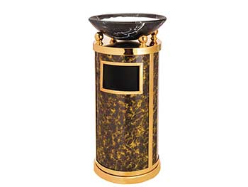 欣方圳钛金垃圾桶由镀金钢板或不锈钢和大理石制作而成,表面经除油、清洗、酸洗、清洗、表调、磷化、清洗、烘干、静电粉末喷涂、高温塑化、冷却等工艺处理。极耐磨损、耐酸、耐碱,耐腐蚀性,永远不会生锈。产品表面呈金黄色,光滑亮丽,彰显高贵本色,适用于各种高档室内场合。