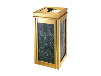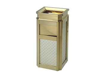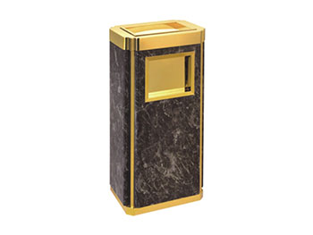 欣方圳钛金垃圾桶由镀金钢板或不锈钢和大理石制作而成,表面经除油、清洗、酸洗、清洗、表调、磷化、清洗、烘干、静电粉末喷涂、高温塑化、冷却等工艺处理。极耐磨损、耐酸、耐碱,耐腐蚀性,永远不会生锈。产品表面呈金黄色,光滑亮丽,彰显高贵本色,适用于各种高档室内场合。