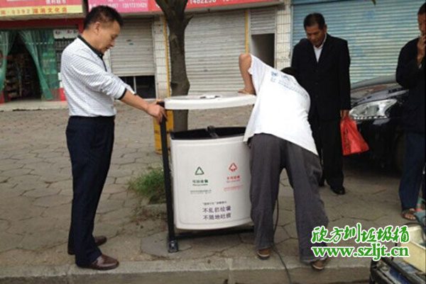 对此,社区坚持把整治这一“老大难”问题作为今年一项重要民生工程。从有限的经费中挤出5万元,购买了80余个环保垃圾桶。聘请专业人员,加班加点在社区主干道、公园、球场等公共场所安装。与旧垃圾桶相比,这批垃圾桶更环保和科学,区分可回收、不可回收垃圾两种,还贴上了“道德守礼温馨提示:不乱丢垃圾、不随地吐痰”的广告宣传,潜移默化影响居民的行为规范,赢得了过往群众一片叫好。
