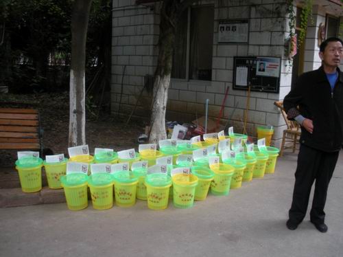 从2011年龙泉驿区城管局就向小区住户、学校、医院、商场、酒店免费发放分类垃圾桶,并将已配置生活垃圾收集桶更换为分类垃圾桶。发放大分类垃圾桶1000余个,小分类垃圾桶12000个。同时开展入户发放了垃圾分类宣传资料,向居民详细讲解了垃圾分类的相关知识。