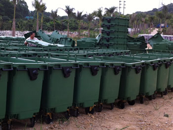 户外塑料布草车由100%高密度聚乙烯HDPE或聚丙烯PP聚丙烯两种新全新塑胶成分组成,耐弱酸碱腐蚀,箱体与桶盖分别使用一次注塑制造而成。防漏结构100%通过测试。桶身及底部特别加固加厚处理,边缘特别加厚,可经受各种外力,能在-30℃~65℃区间温度内正常使用。提供各种颜色(蓝、红、黄、绿)的塑料布草车供您选择;并且车身填充严密,车身日久不变形,车身结构不会变脆弱和变形,抗热、防冻及耐酸、耐碱、易清洗等特点现在被市政环卫物业小区广泛使用。