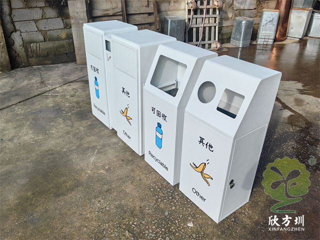 | 城市美学新篇章定制户外密闭式三色不锈钢垃圾箱 |