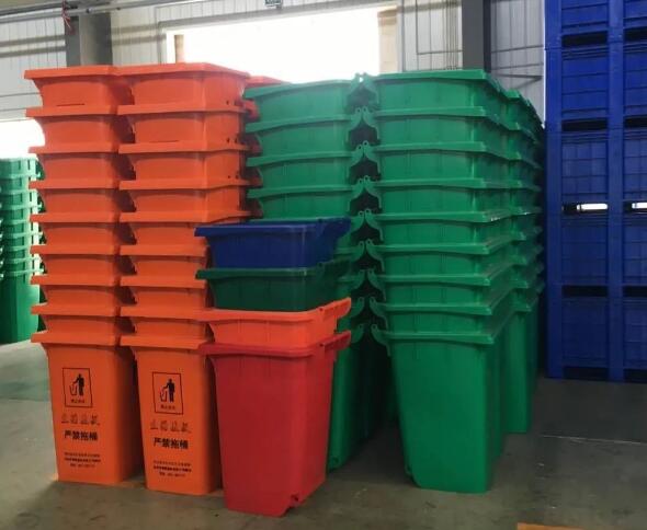 塑料垃圾桶采用高密度聚乙烯(HDPE)一次注模而成,无焊缝;