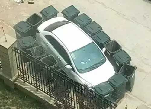 照片一经发布,立即引发网友热议。有拍手叫好整治乱停车的,还有觉得围城这样是不是闹太过了。今天记者找到了事发地点,位于杭州路的中海临安府南门外,现场看到,垃圾桶还整齐的摆在那里,但是被围的白色车辆已经开走。附近居民说,当天是差不多中午的时候,就发现车辆被十几个空垃圾桶给围住了,大约过了两三个小时,车主赶来把车开走。