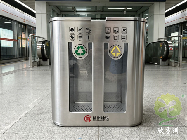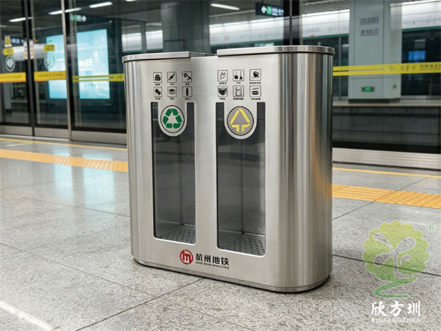 在地铁站这样每日吞吐百万客流的地下动脉中,每一件公共设施都在无声地言说一座城市的品格与追求。当传统的隐匿式垃圾桶悄然退场,采用 304不锈钢拉丝与亚克力板复合工艺 的定制化分类垃圾桶,正以其卓越的功能性与现代美学,重塑着轨道交通空间的环保叙事。