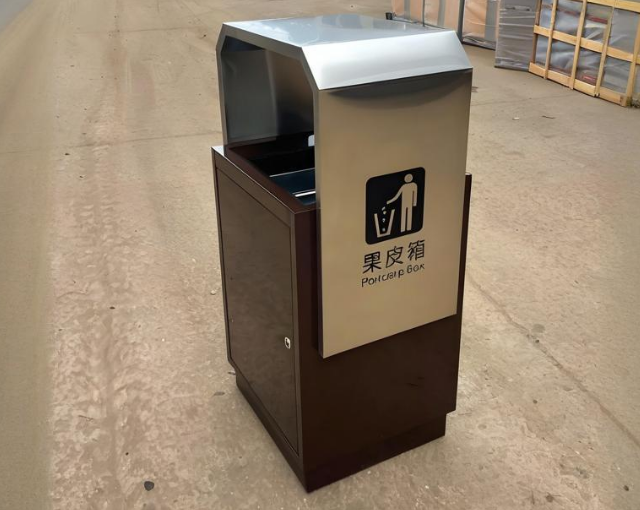 定制果皮箱的灵魂,在于其材质的精挑细琢与工艺的精益求精。喷塑不锈钢作为基材,其卓越特性为垃圾桶注入持久生命力。不锈钢本质坚韧,抗腐蚀能力极强,轻松抵御室内潮湿空气或偶尔泼溅的清洁液侵蚀,确保经年累月下仍能光洁如新。表面喷塑工艺更添一层坚固保障——粉末涂料在高温下熔融固化,形成一层致密、均匀、附着力强的彩色保护膜。这层“外衣”不仅显著提升了产品的抗划伤能力,更能有效防止指纹和污渍残留,日常维护仅需简单擦拭即可恢复洁净。优质不锈钢板(如0.8mm及以上厚度)经过精密剪裁、折弯与焊接,结构稳定牢固,承载能力强。细节处亦显用心:边角圆润处理,避免人员意外磕碰伤害;底部可加装防滑橡胶垫,确保放置稳固无声,处处体现对使用者安全的周到关怀。