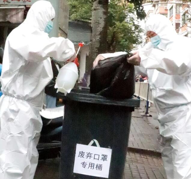 “我们在城区主干道、小区门口设立废弃口罩专用桶,桶内铺设黑色塑料袋,收集前先对废弃口罩及废弃口罩专用桶喷洒消毒液消杀,同时,安排专人穿上防护服、佩戴口罩和专用手套,采取专车、单独收集、全程密闭和直运方式,集中将废弃口罩运往处置场处置。”三门峡京环湖滨区项目部经理吴俊介绍,“目前,每天15时,我们会安排一辆垃圾清运车、两名专业清理人员对废弃口罩进行处理。”